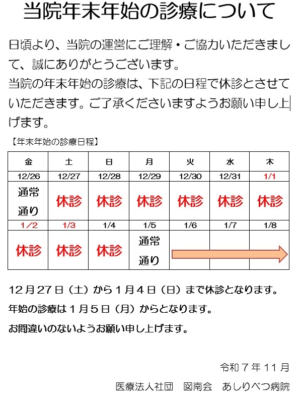 ★年末年始の診療案内(2025.12.17)
